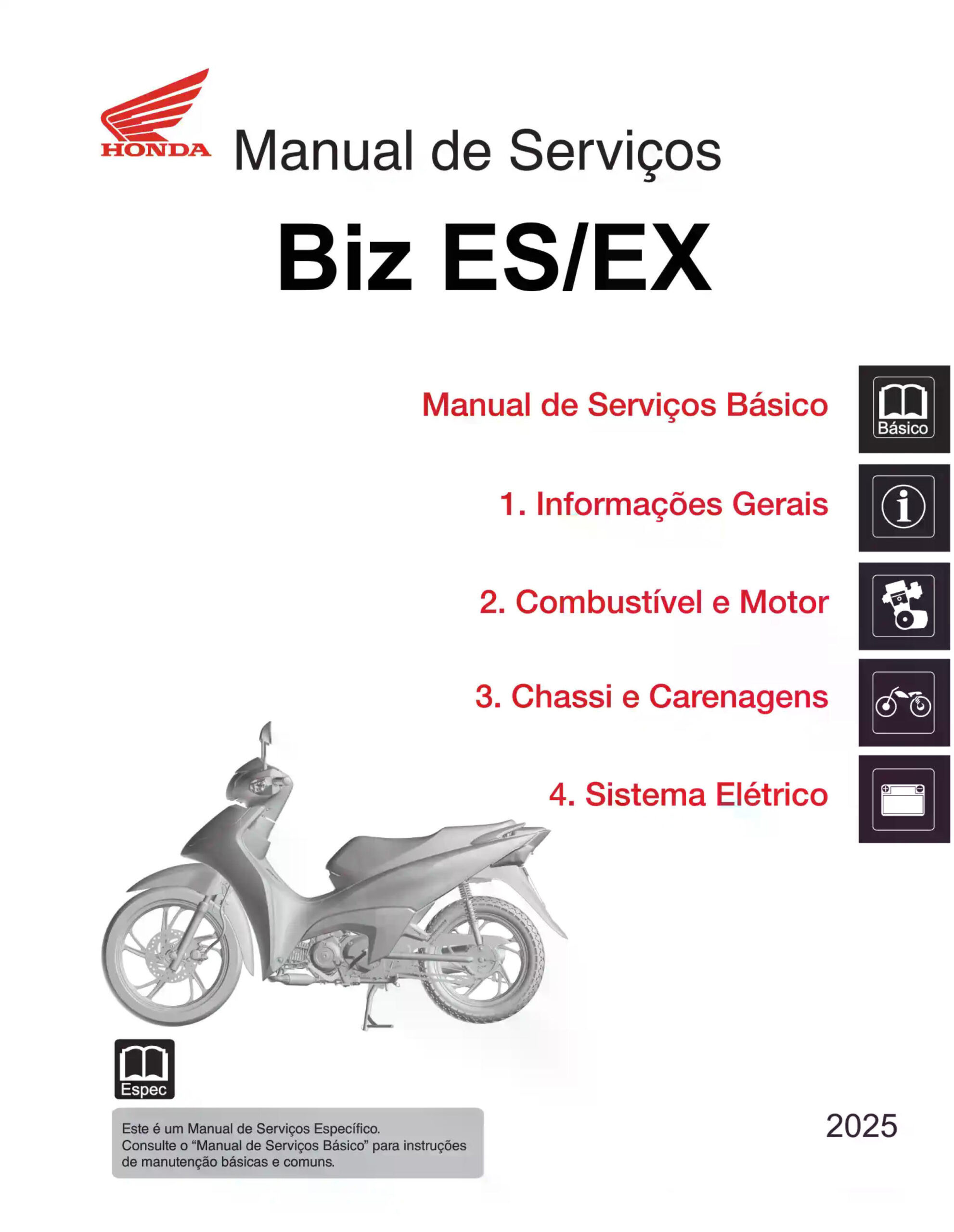 Manual de Serviços – Honda – BIZ 125 – ES – EX – 2025