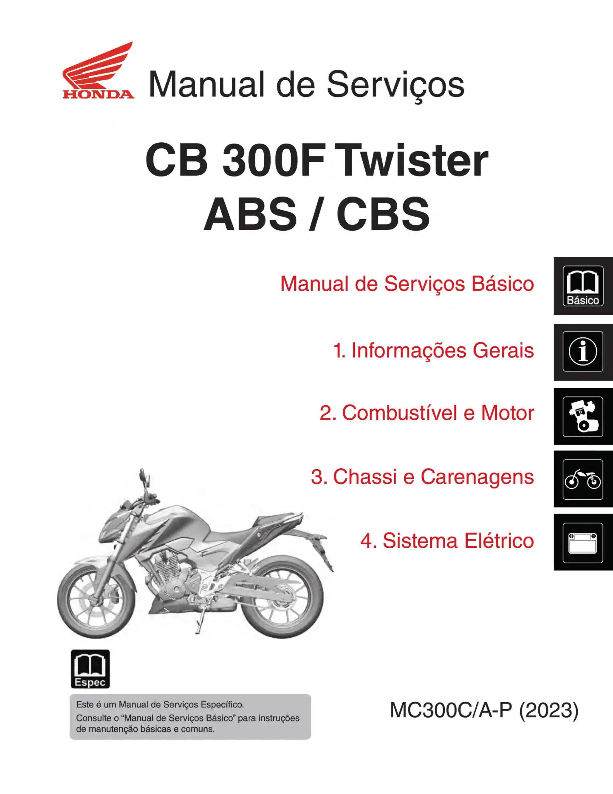 Manual de Serviços – Honda – CB 300 F Twister ABS – CBS – 2023
