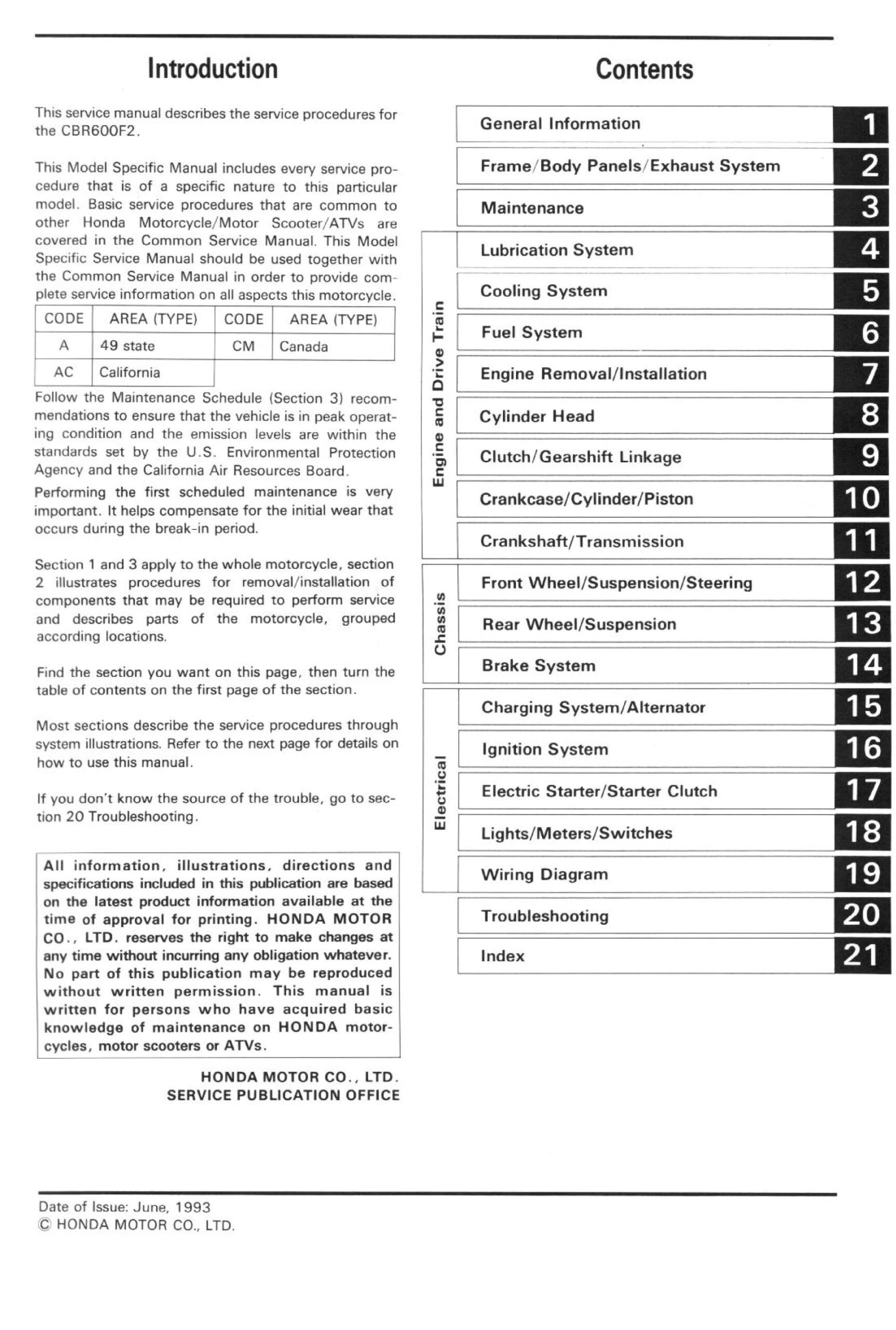 Manual De Serviços – Honda – CBR 600 F2 – 1991 – 1994